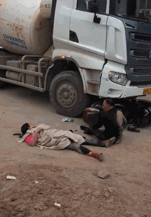 骑电动车被大货车压在了车下
