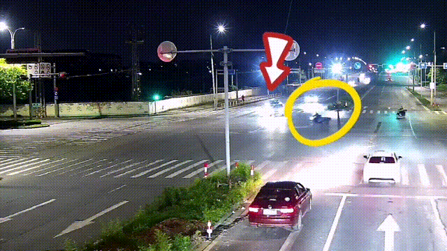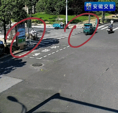 三轮车夜晚路口乱窜,强行变道被撞翻