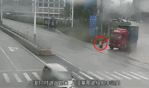 不要与大货车同时进入路口,远离危险