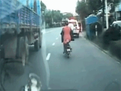 骑车在车流中穿行,这是拿生命当儿戏