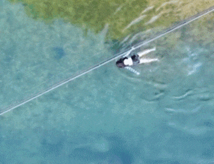 小朋友在水里成功变成了一只小青蛙