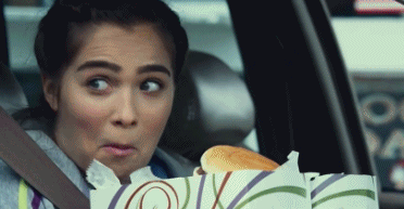 大口吃面包的搞笑女孩