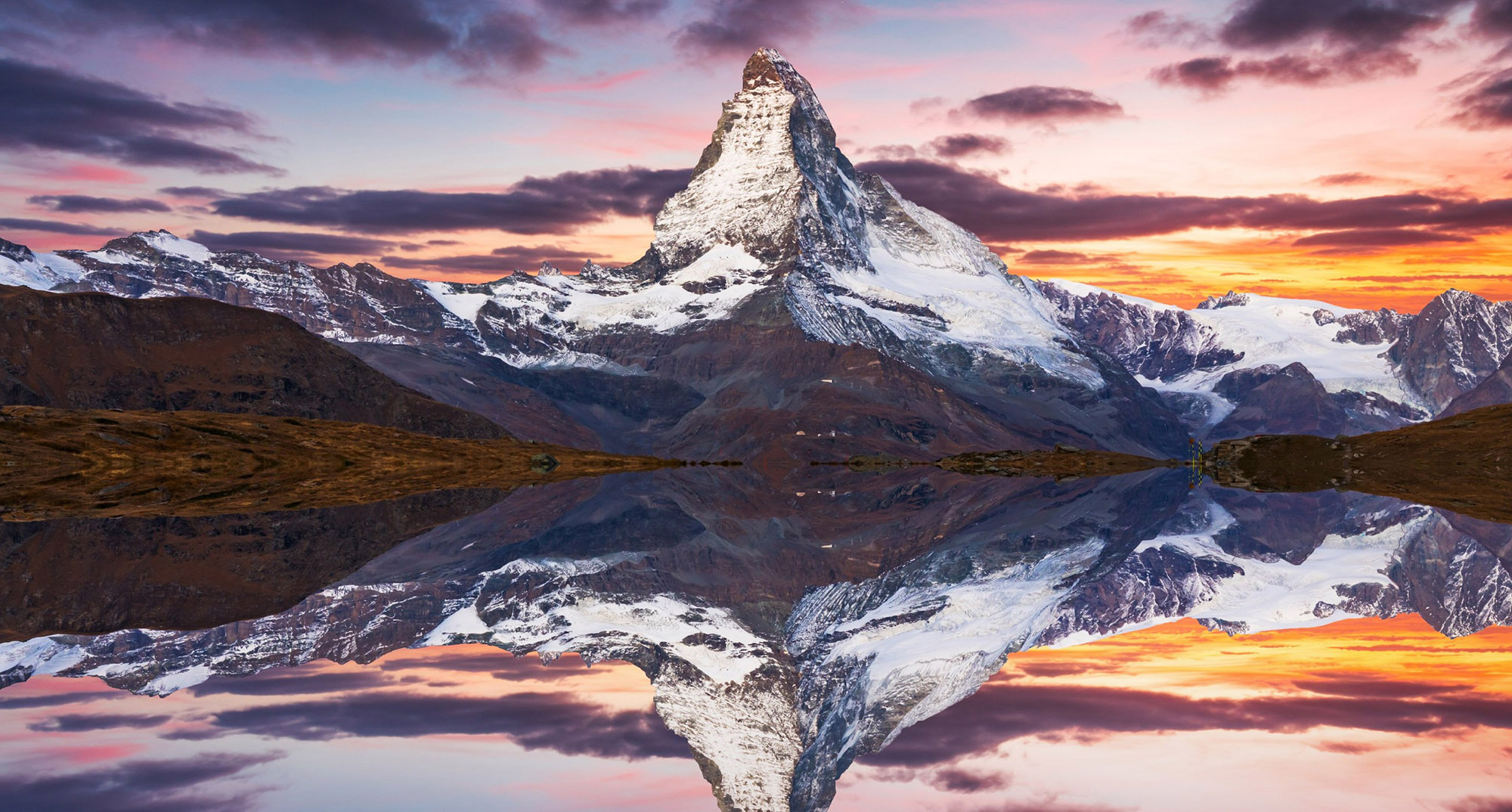 圣洁的雪山清晰的倒映在水里,像照镜子一样