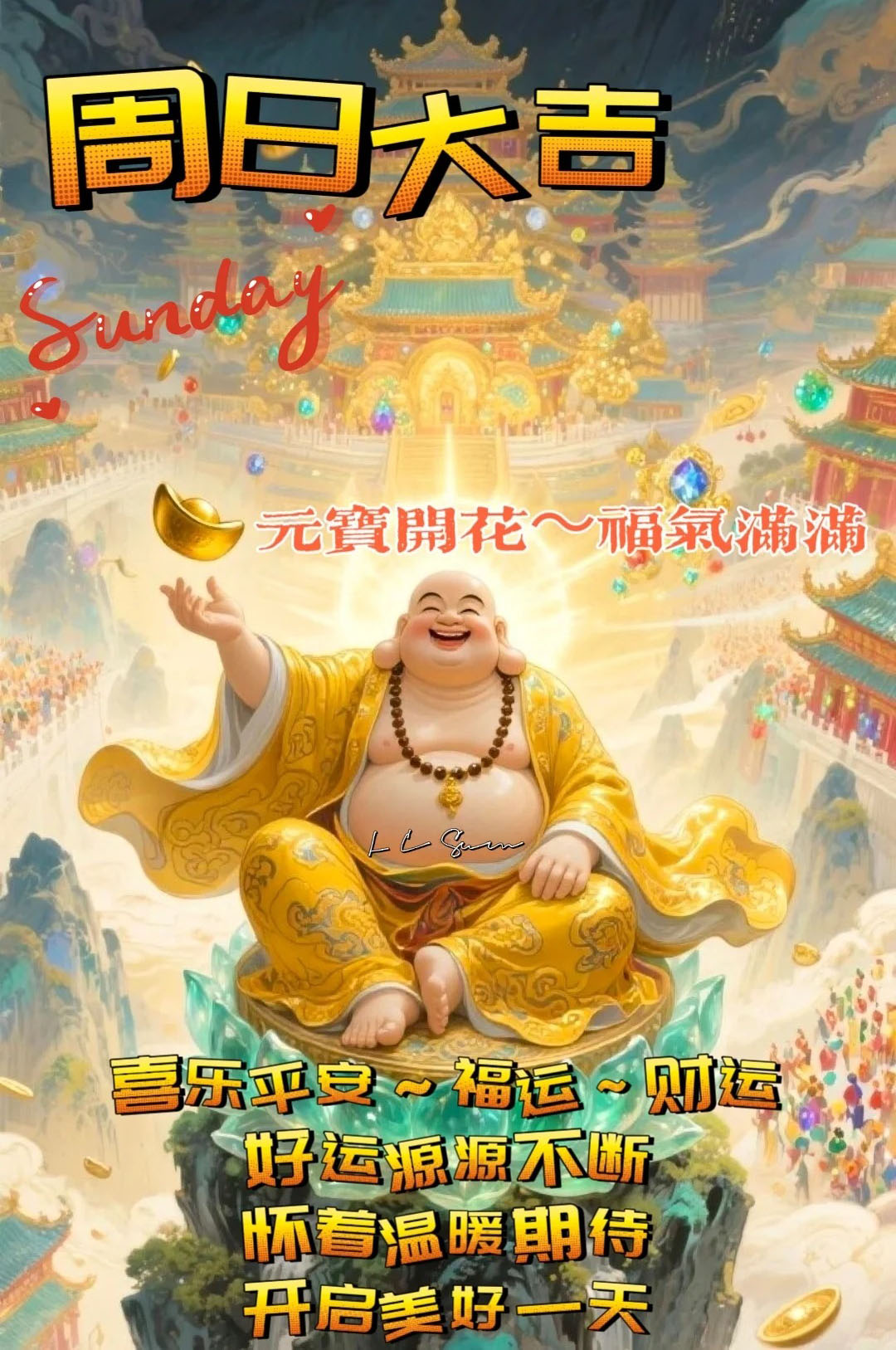 周日祈福主题的喜庆风格图文海报,周日大吉
